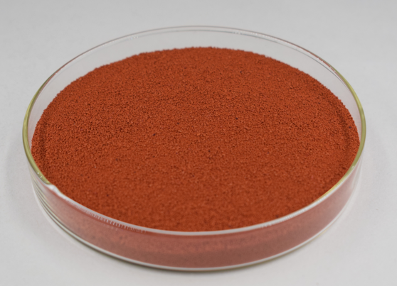 本产品呈暗红色、流动性良好的微粒,天然叶黄素(源自万寿菊)含量为100.0g/kg,着色效果倍增。